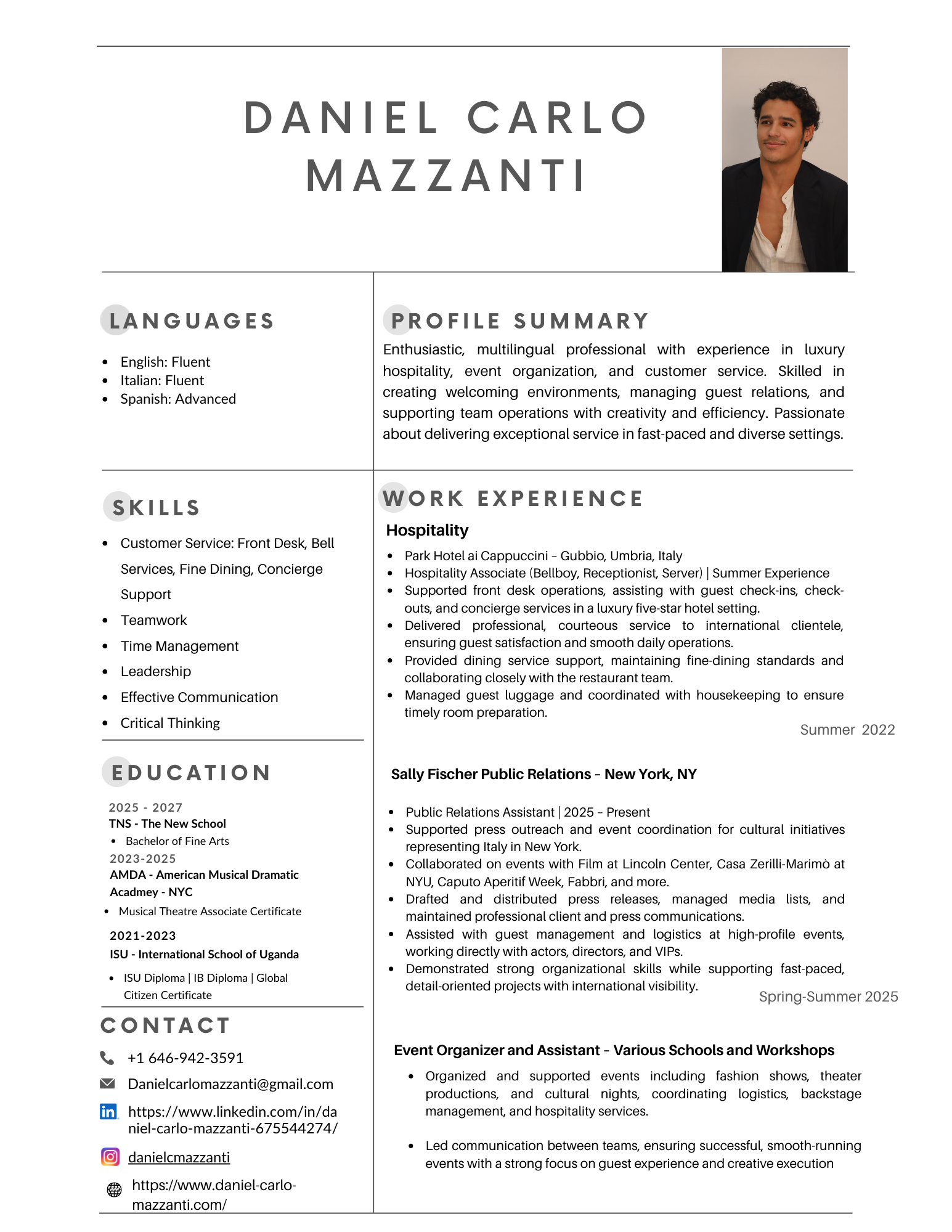 Resume: Business & Hospitality